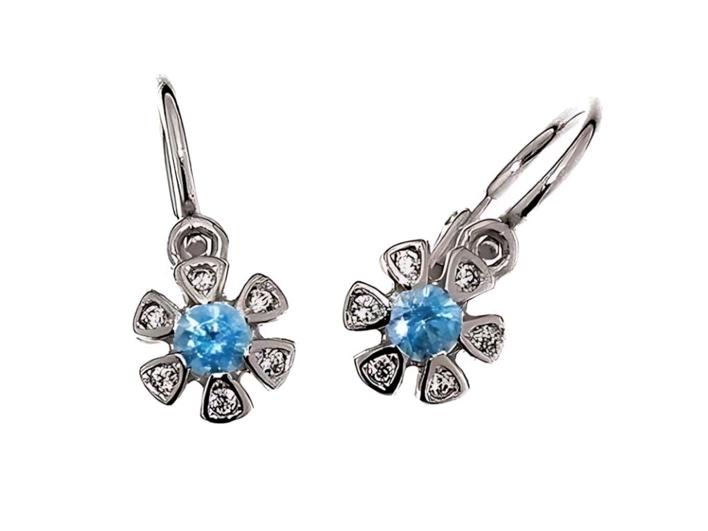 Dětské náušnice z bílého zlata ve tvaru květiny s modrými a bílými zirkony Cutie C2156 + krabička a čistící utěrka zdarma