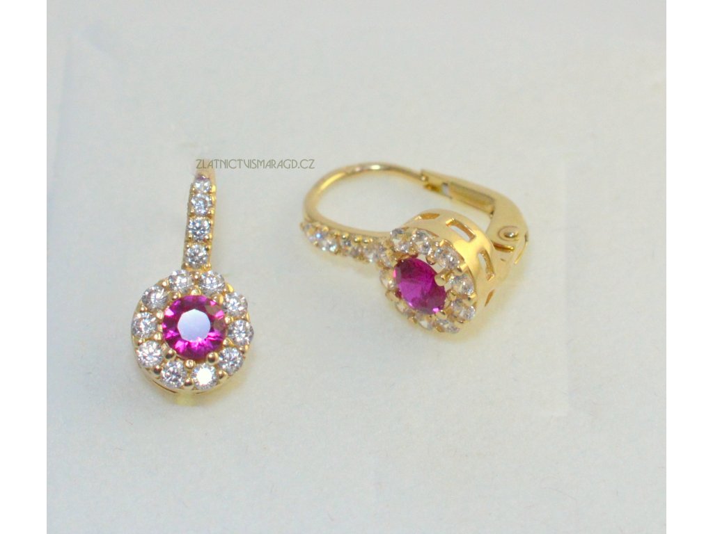 Moderní náušnice ze 14-ti karátového zlata žluté barvy zdobeny zirkony.