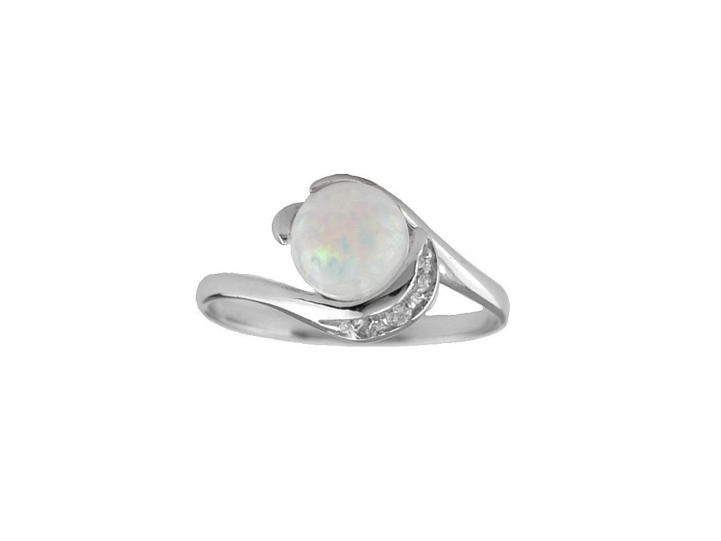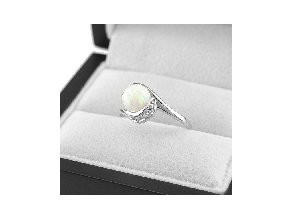 Opálový prsten s bílými zirkony + krabička a čistící utěrka zdarma