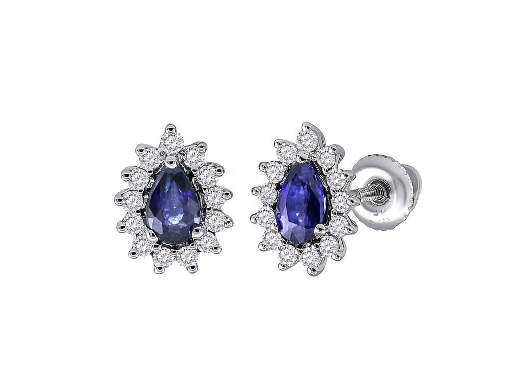 Safírové náušnice s brilianty + krabička a čistící utěrka zdarma