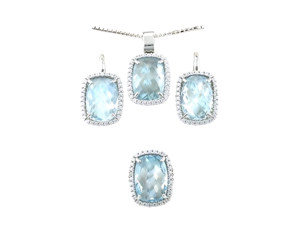 Souprava náušnice a přívěšek bílé zlato s akvamarínem + krabička a čistící utěrka zdarma