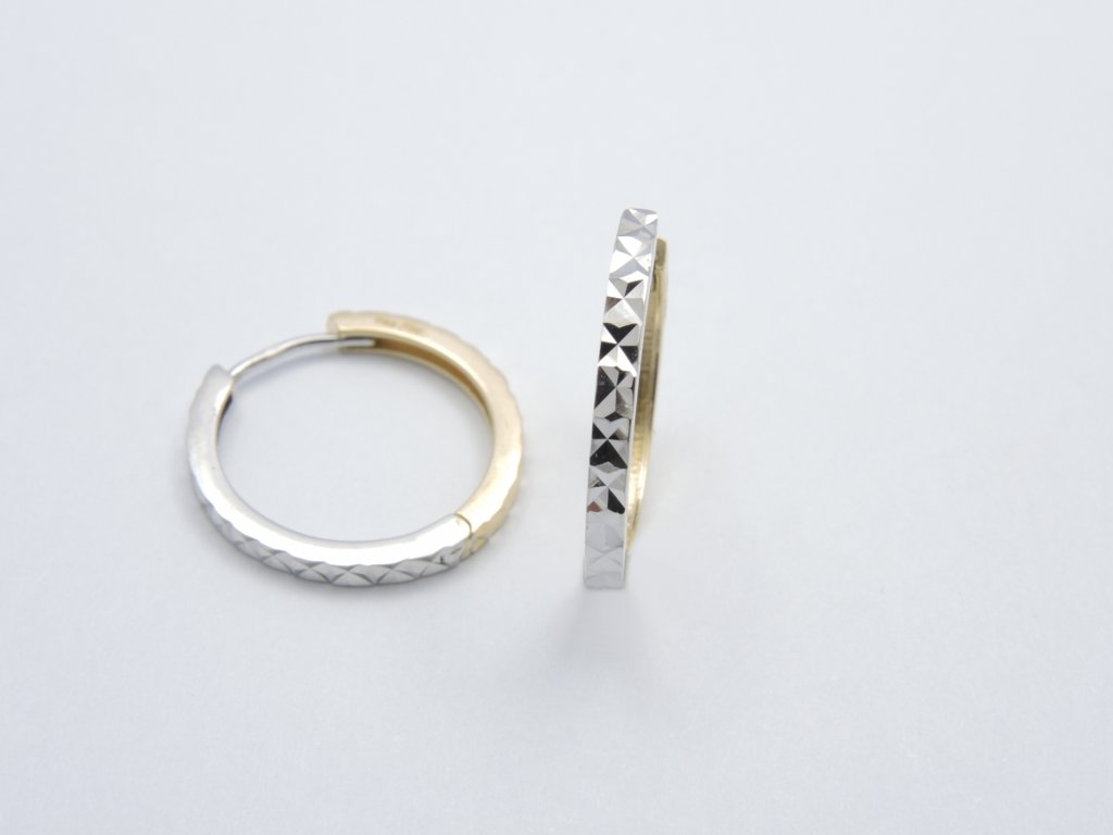 Kvalitní náušnice ze 14-ti karátového zlata žluté a bílé barvy.